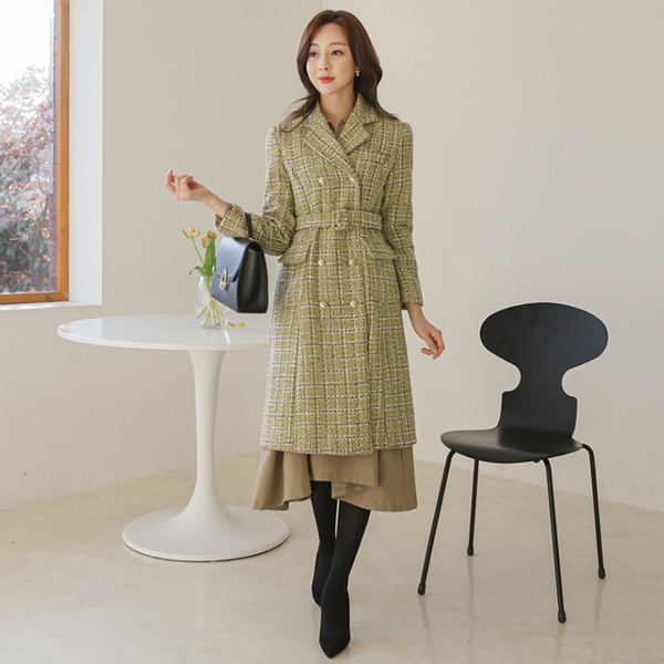ダブル ゴールドボタン メタリック ツイード ウールのコート