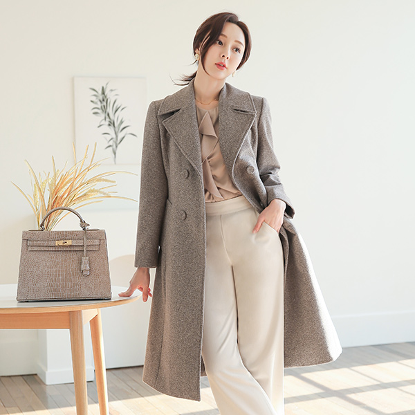 ツイル ボカシ ダブルボタン ベルティード ロングコート(ボンディング裏地)