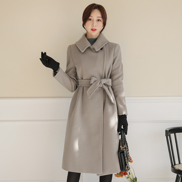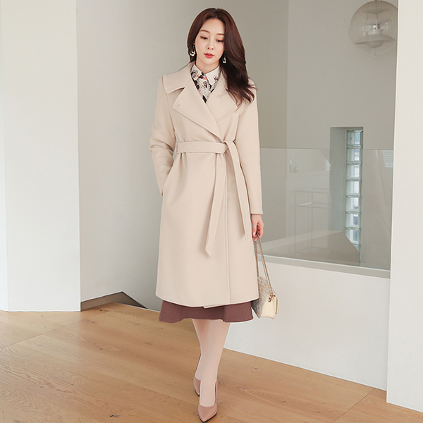ワイド カラー シンプル ウール コート(キルティング裏地)