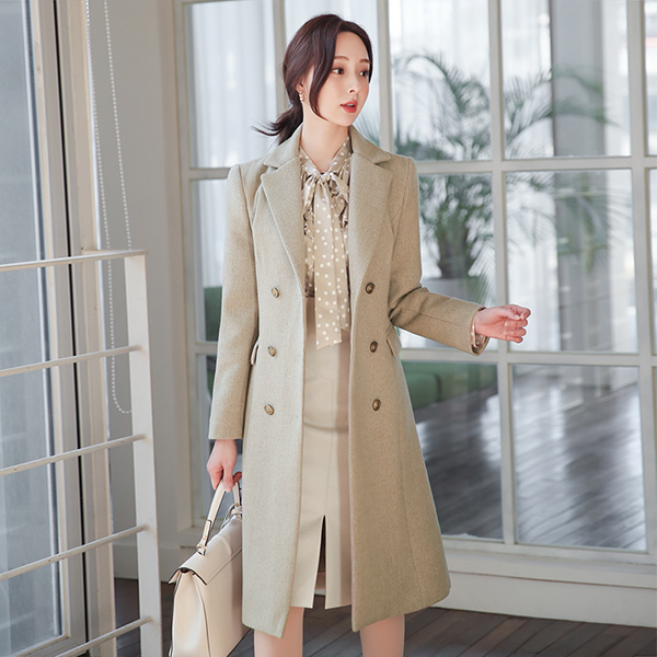 アンデイーグ ゴールドボタン ツイルウール ロングコート(キルティング裏地)