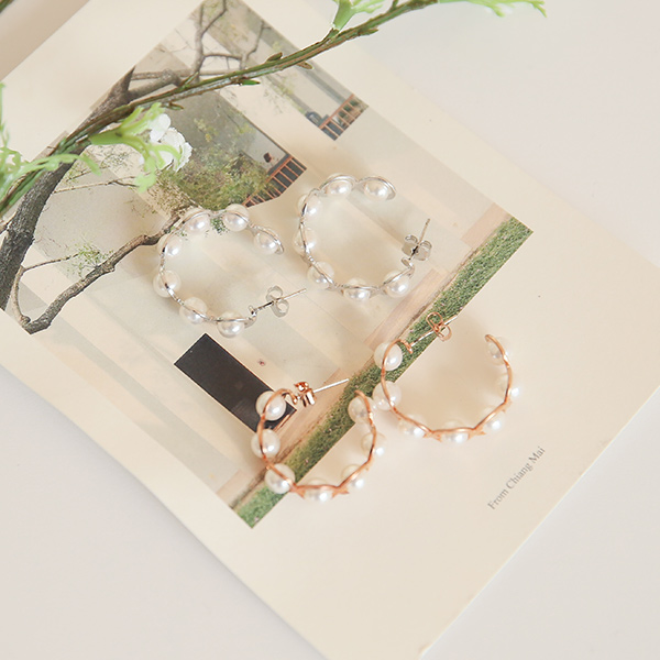 Silver&ゴールド 真珠ボール ラウンド イヤリング