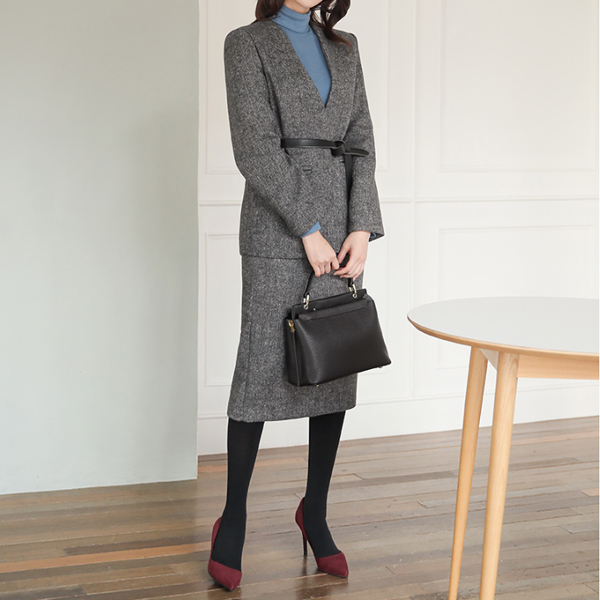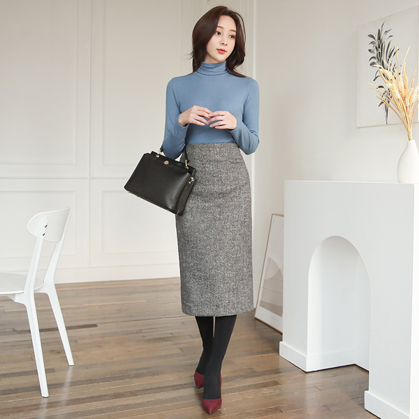 ミニマル ヘリンボーン ミディ ペンシル スカート