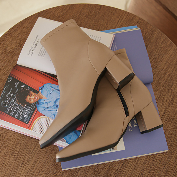 クラシック ステッチ ブロックヒール アンクルブーツ