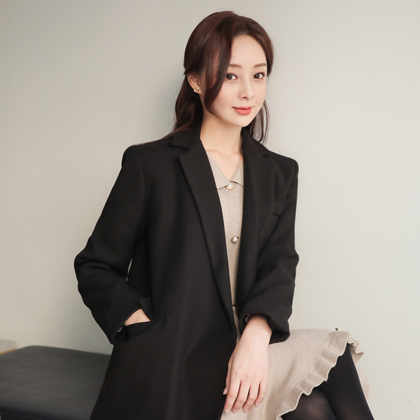 シンプル フラップポケット ツイルウール ロングコート(キルティング裏地)