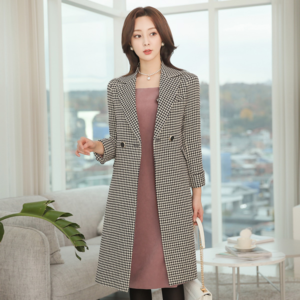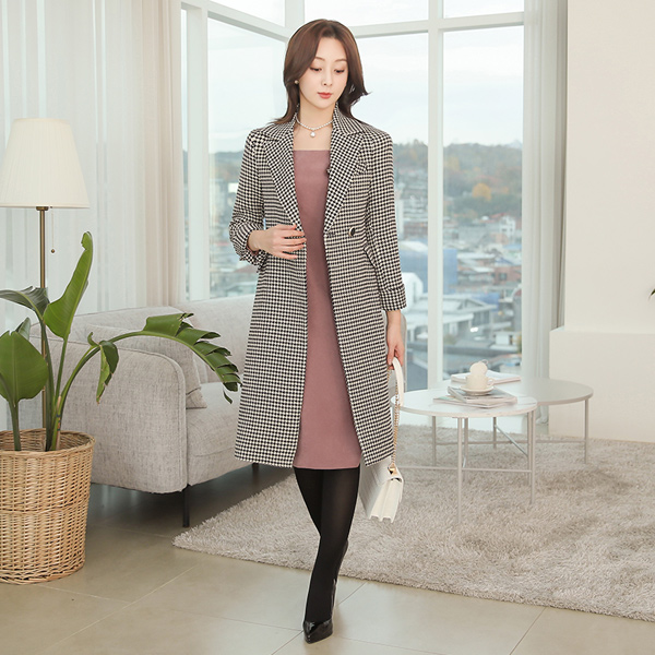 ワイド カラー ハウンドトゥース チェック ウール コート