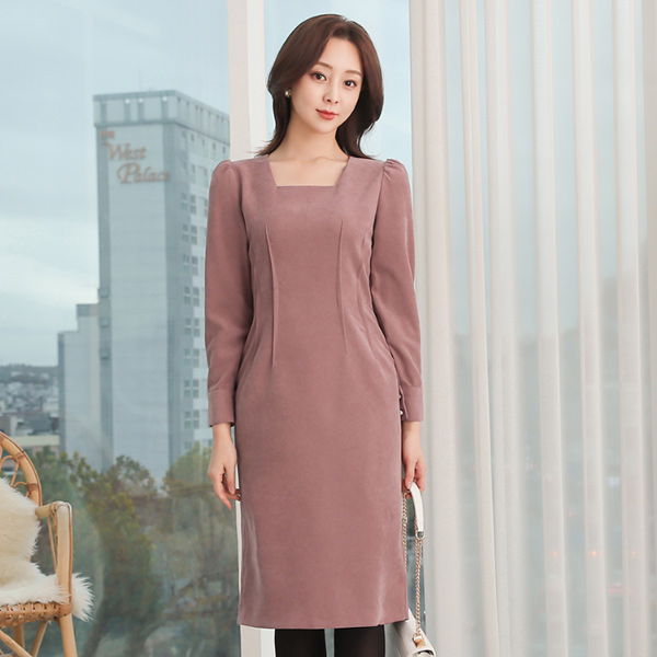 スクエアネック スエード タッチ ダブルピンタック ワンピース