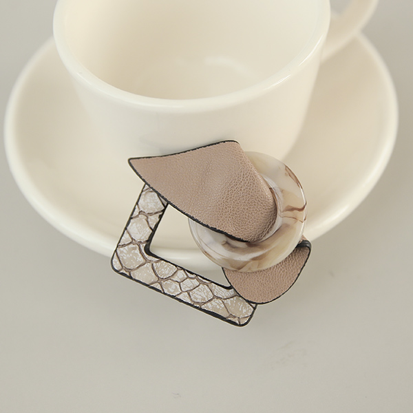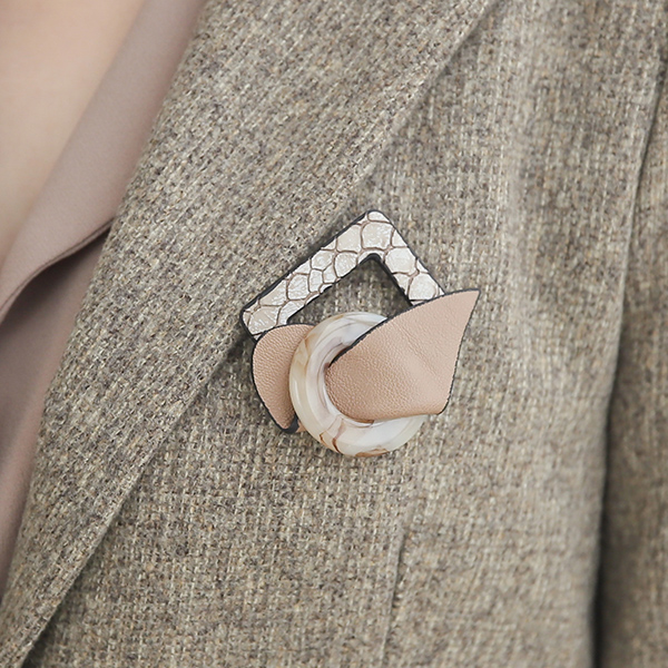エンボスレザー&フォーマイカ レザー ウイング ブローチ