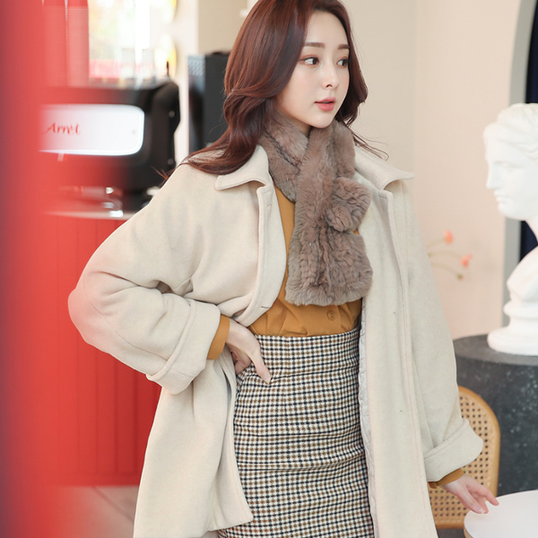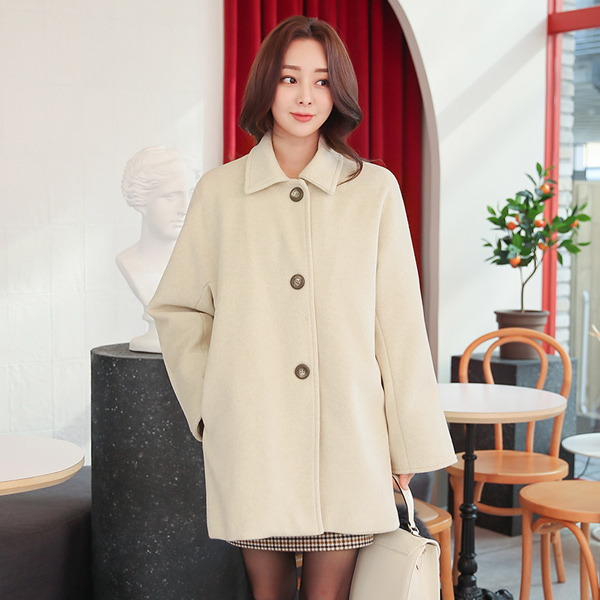 ワイド カフス ビッグ ウッドボタン シングル ウールのコート(キルティング裏地)