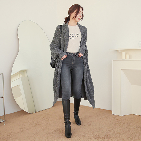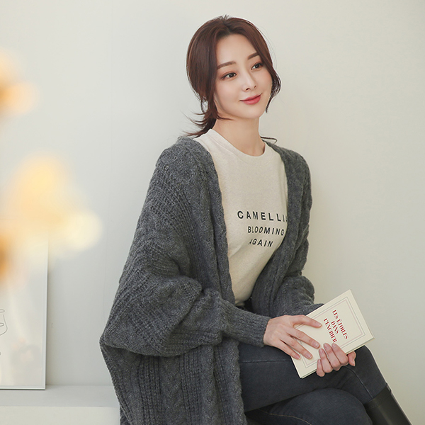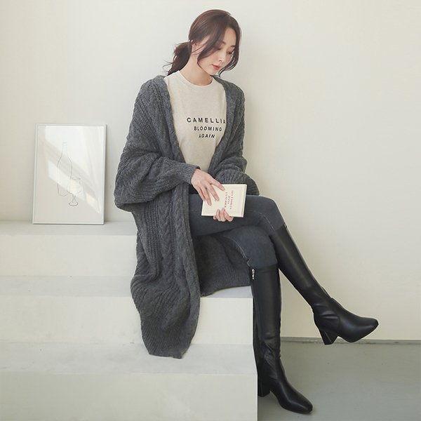 ケーブル ルーズフィット Batwing Sleeve マキシ カーディガン