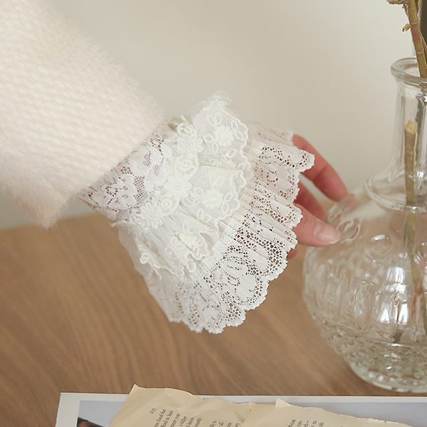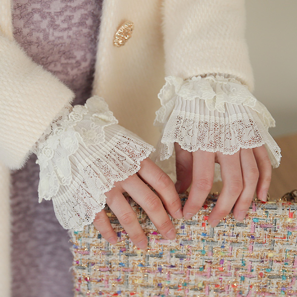 二重 プリーツ 花柄 刺繍 ルネ カフス