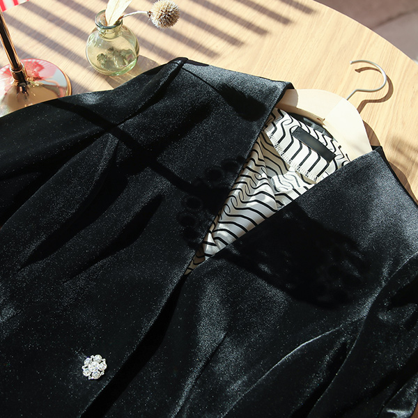 フォーマル トゥインクル キュービックボタン ベルベット ノーカラー ジャケット