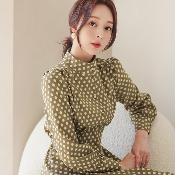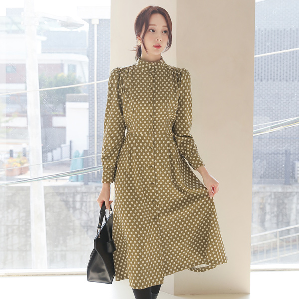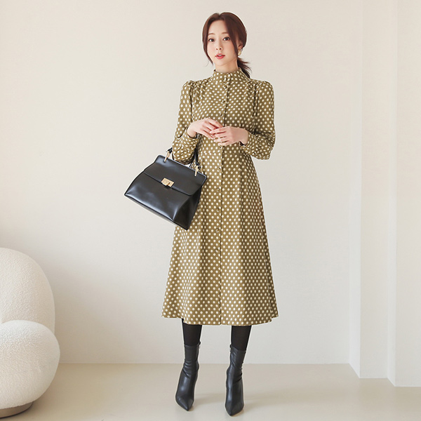 ヘンリーネック トット ダブルピンタック フレア ワンピース