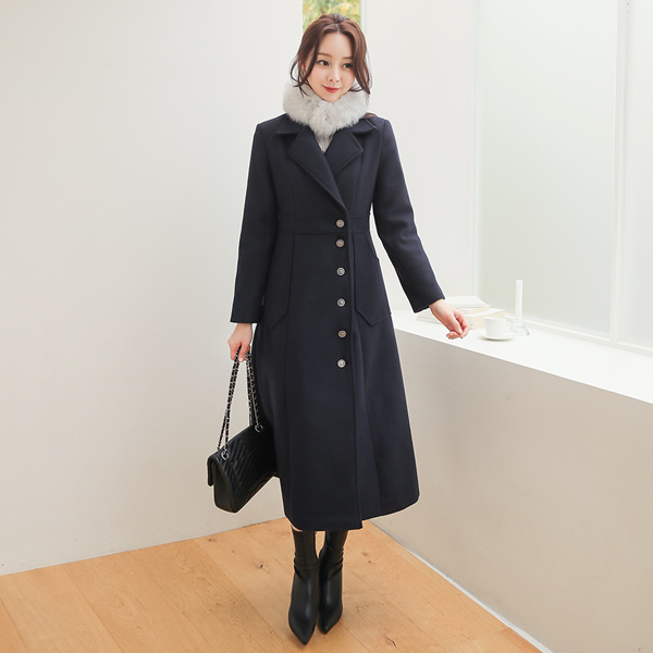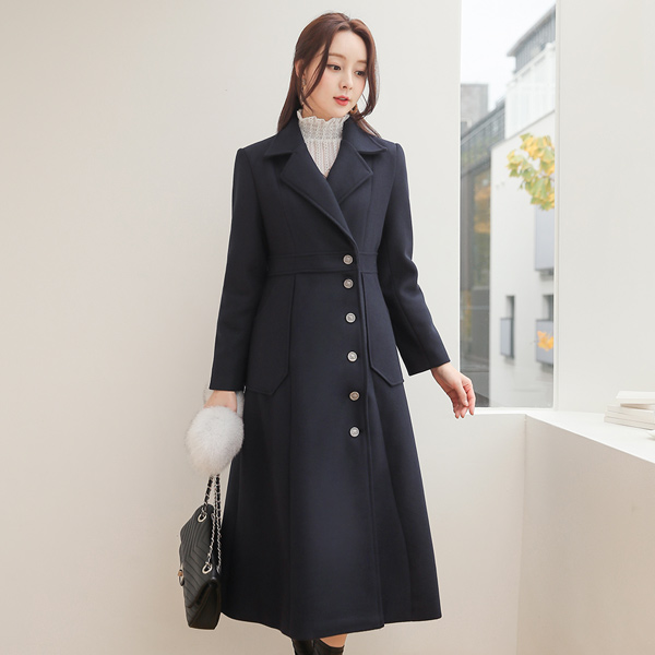 Jane サイドボタン マキシ フレア ウールのコート