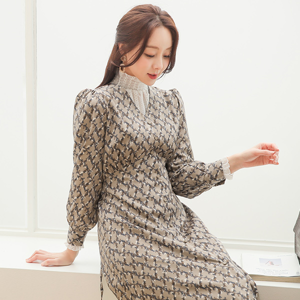 春季 バックリボン ブイネック 起毛 ロングワンピース