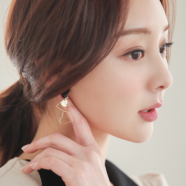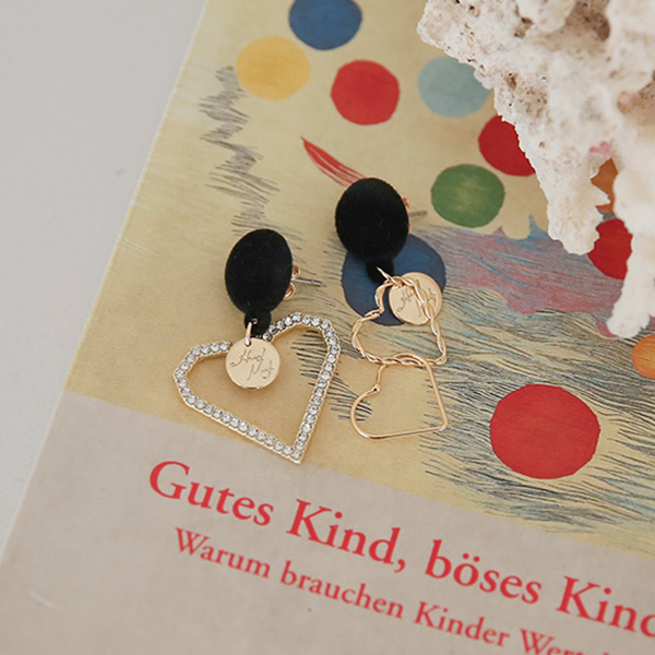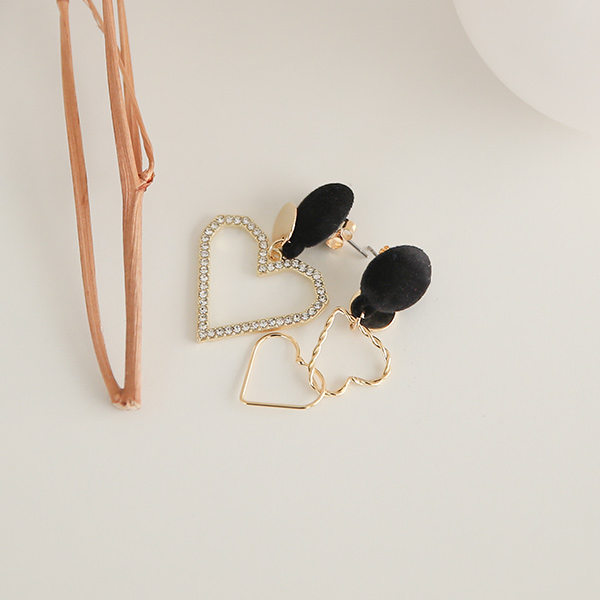アンバランス ゴールドハート ベルベット ドロップ イヤリング