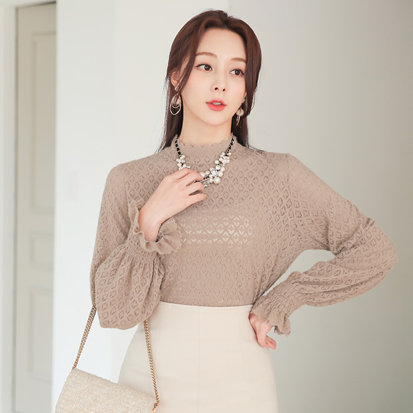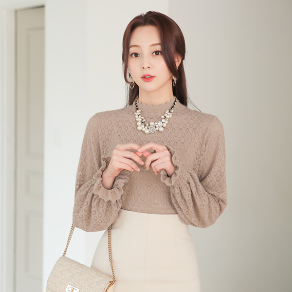 ダイヤ 起毛 レイス スモッキング ビスコース ブラウス