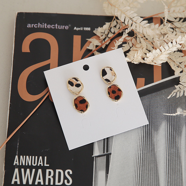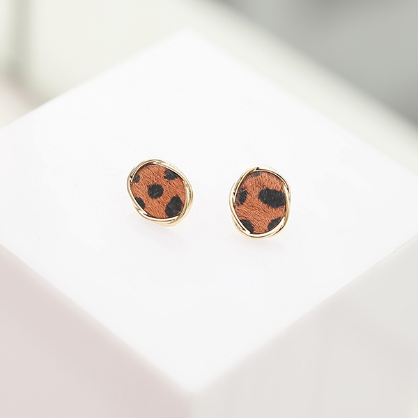 Leopard 子牛 ウエーブ ゴールドリング イヤリング