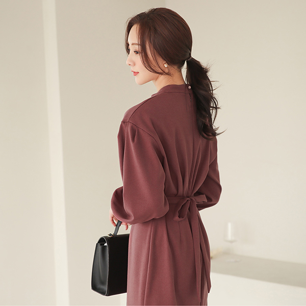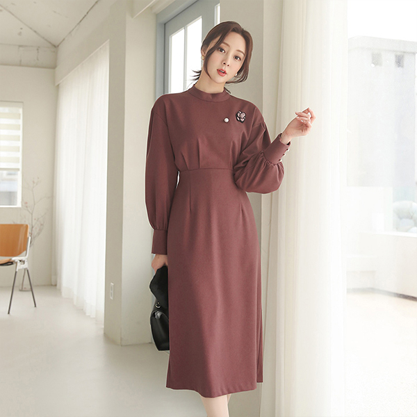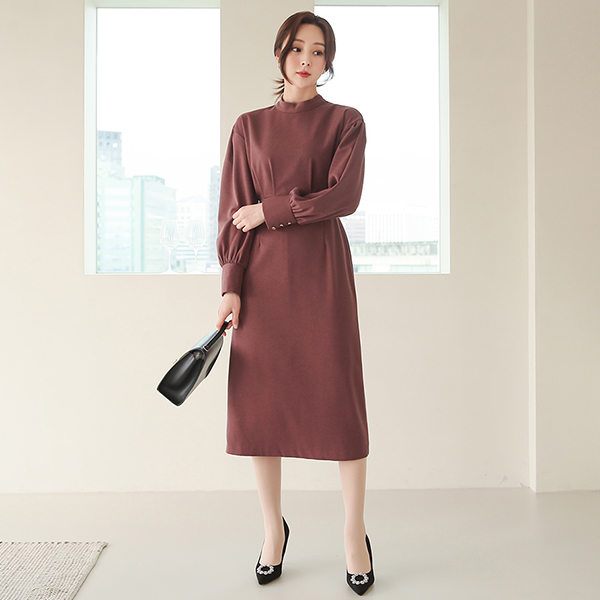 ハーフネック 와이드커프스 パフ袖 ワンピース