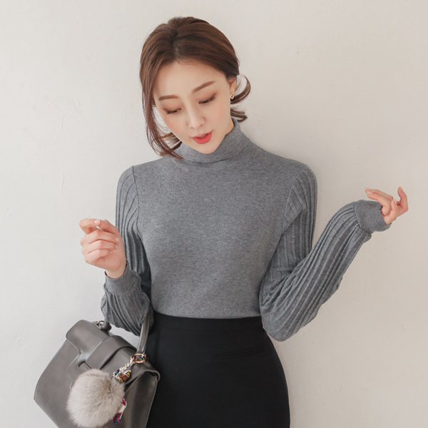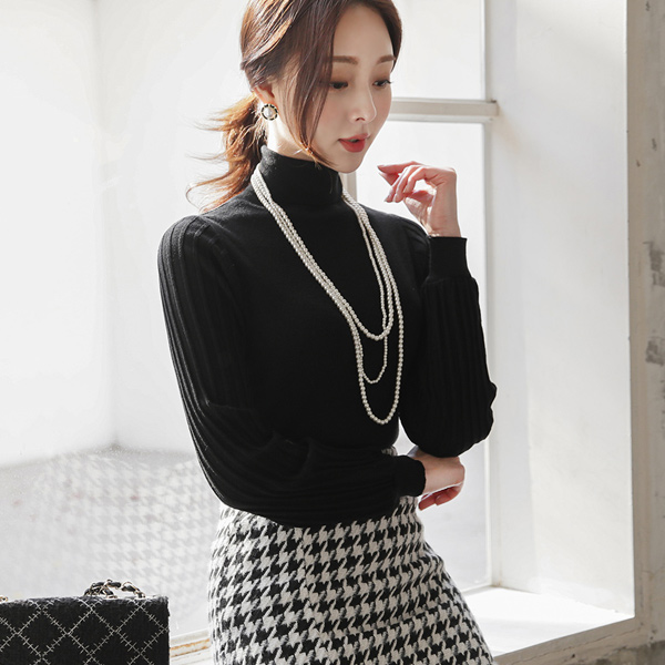 うしろボタン ボールド コール天 スリーブ とっくりえり ニット