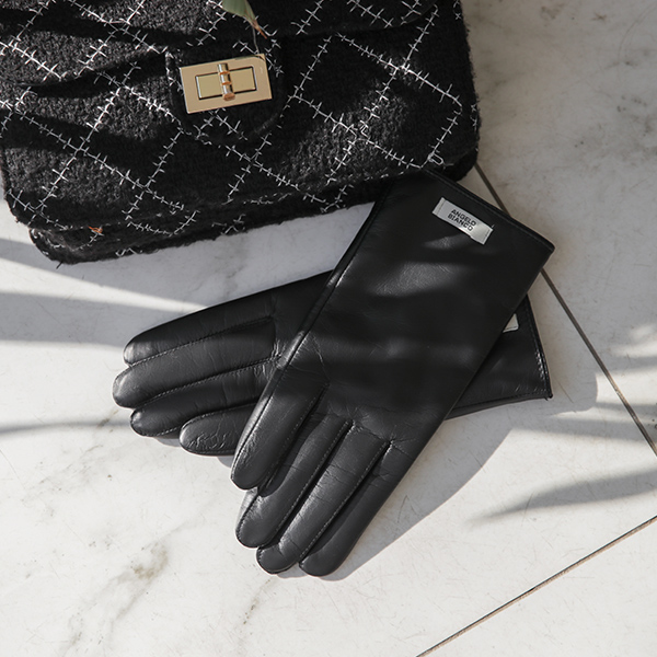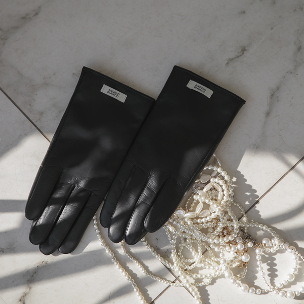 안젤로 Black レザー 手袋(ファー裏地)
