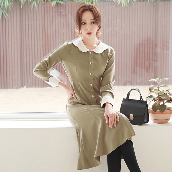 ロマンチック ウエーブ カラー&袖 配色 ワンピース
