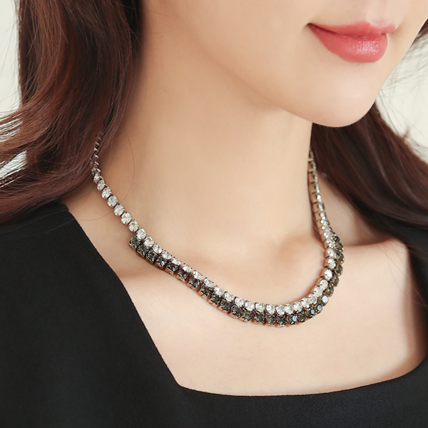 Silver&Black キュービック ダブル ストラップ ネックレス