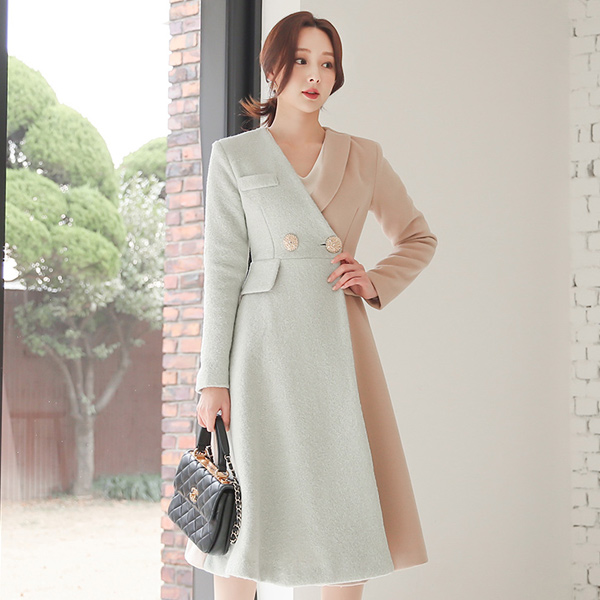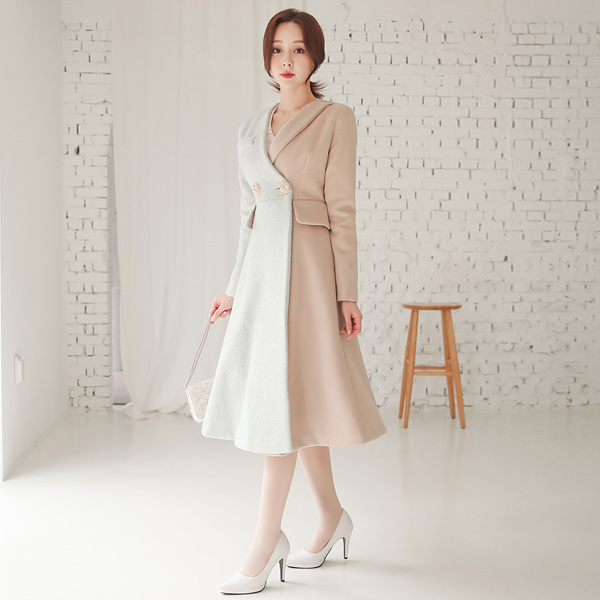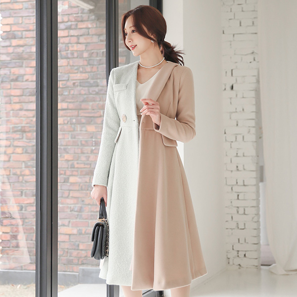 ブークレ ハーフ配色 Aライン ノーカラー ウールのコート