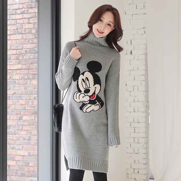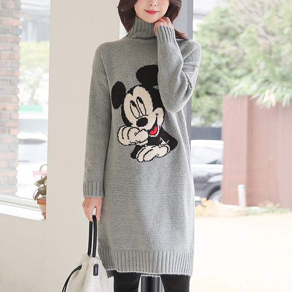 タートルネック ミッキー ロング ニット ワンピース