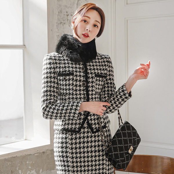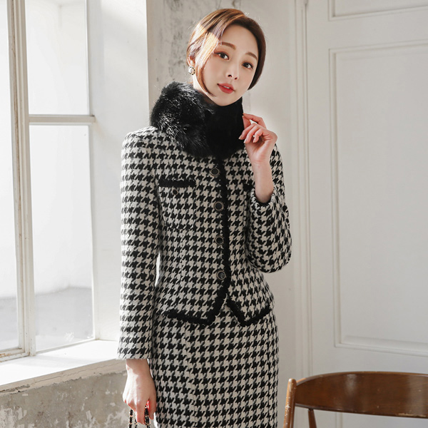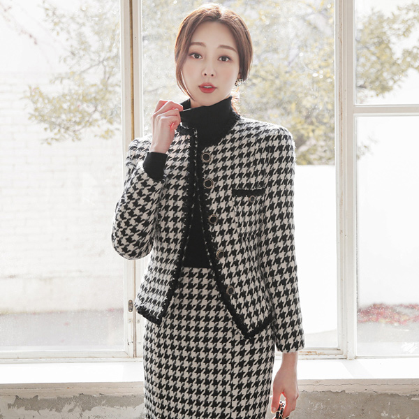ハウンドトゥース ブレード トリミング ゴールドボタン ジャケット