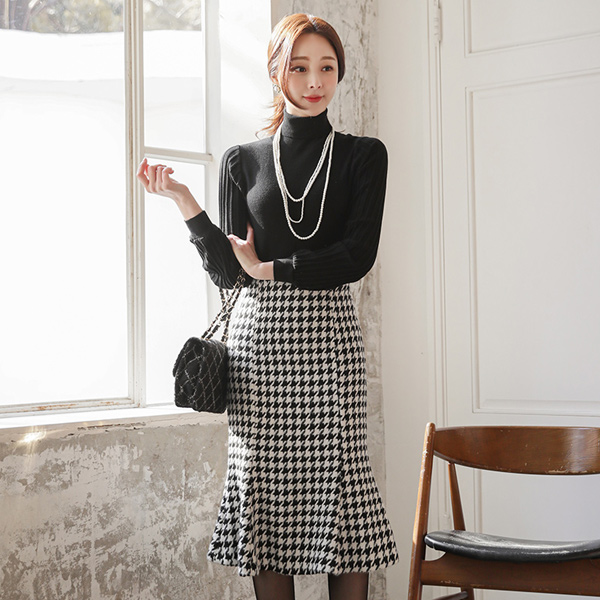 ハウンドトゥース ゴアード マーメイド スカート