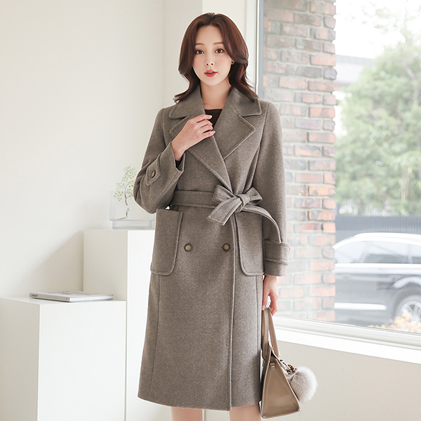 ワイドカラー ボカシ ビッグポケット ロングコート