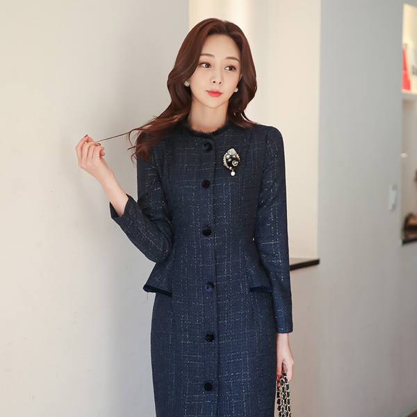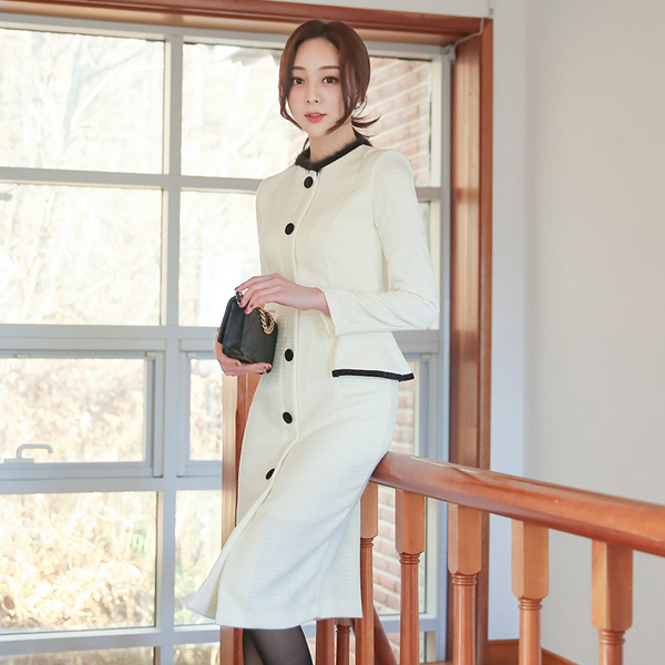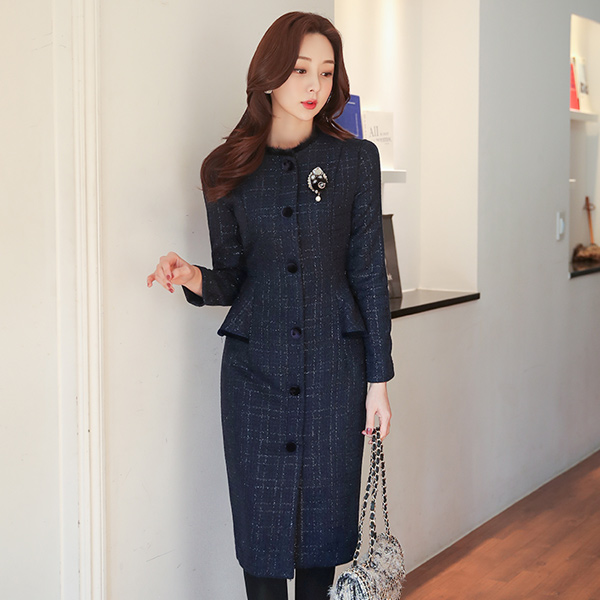 本当ミンク トリミング パールツイード ペプラム ワンピース