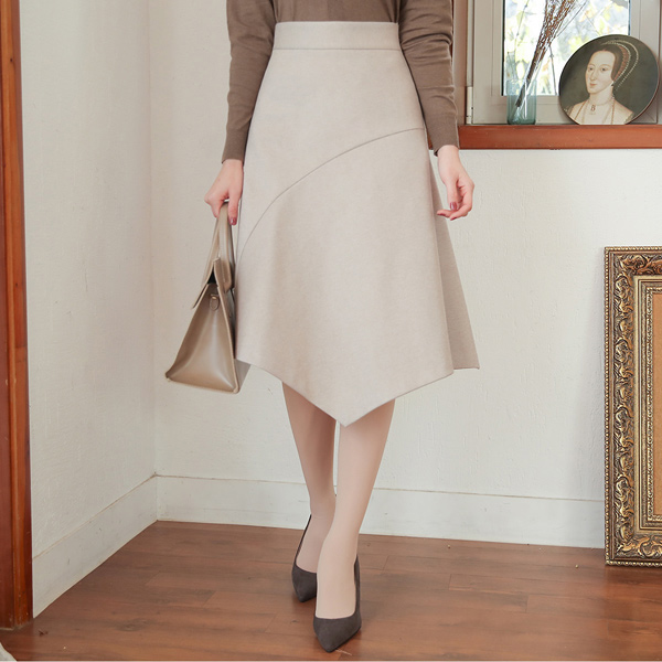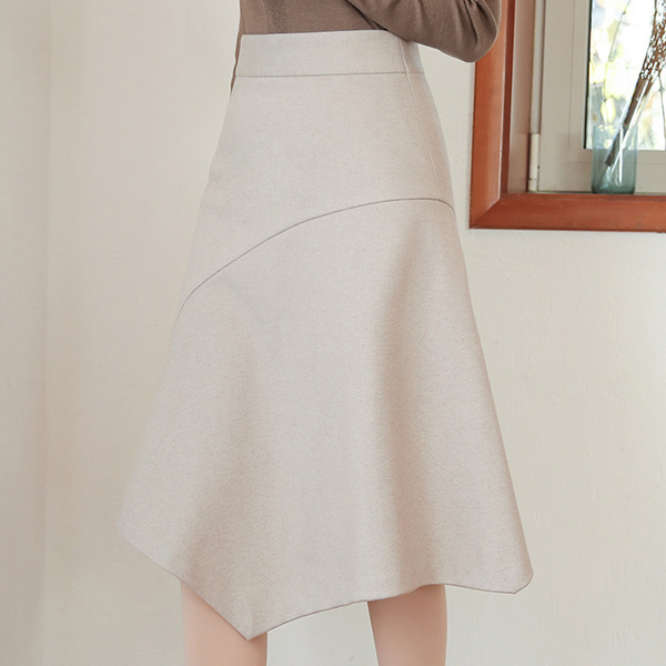 アンバランス ラウンド 切開 弾力 起毛 スカート