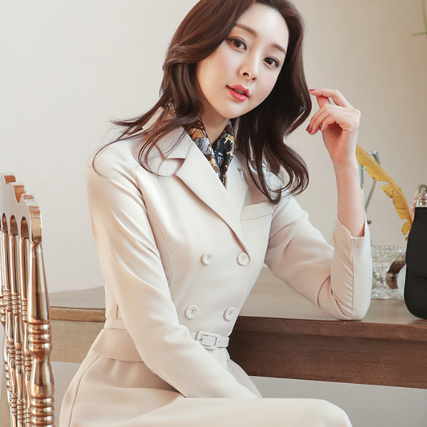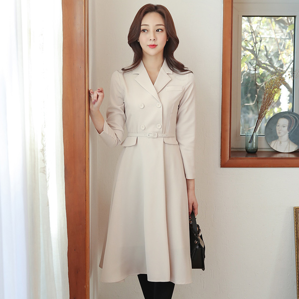 クラシック ダブルボタン ベルティード テーラード ワンピース