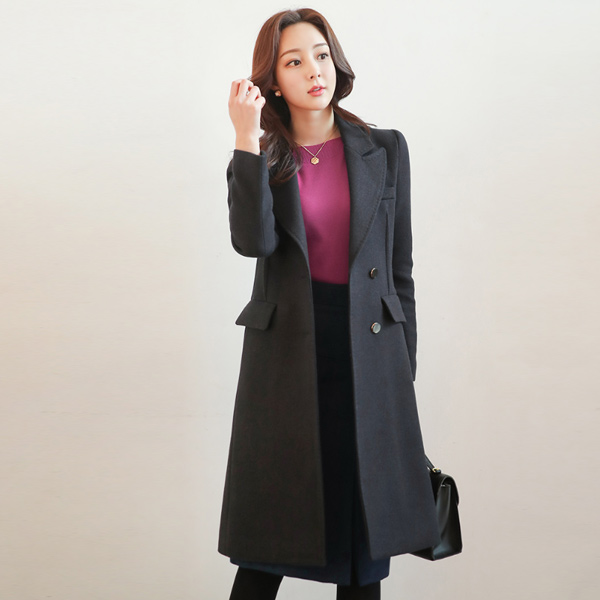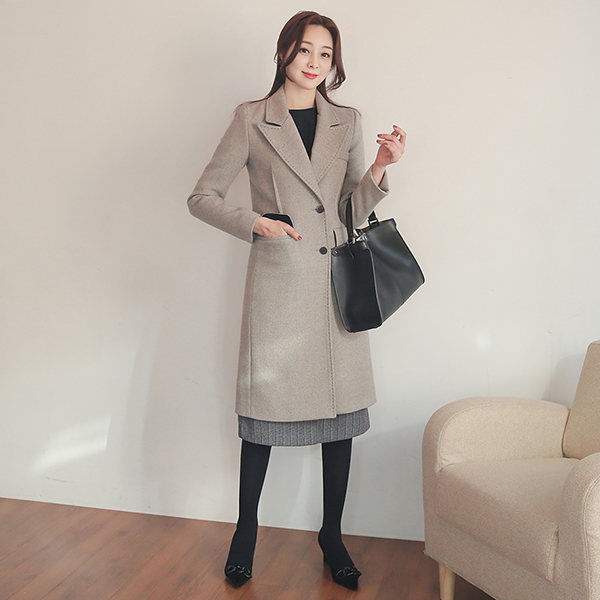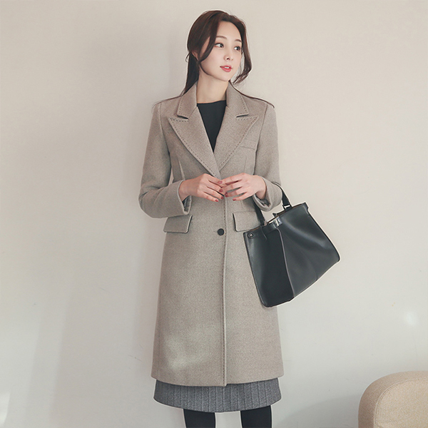 ステッチ ピークトカラー 隠れた 配色 ピンタック コート(キルティング裏地)