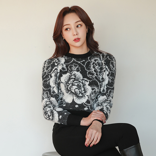 スノー ローズ パフ袖 クロップド ウール アンゴラ ニット
