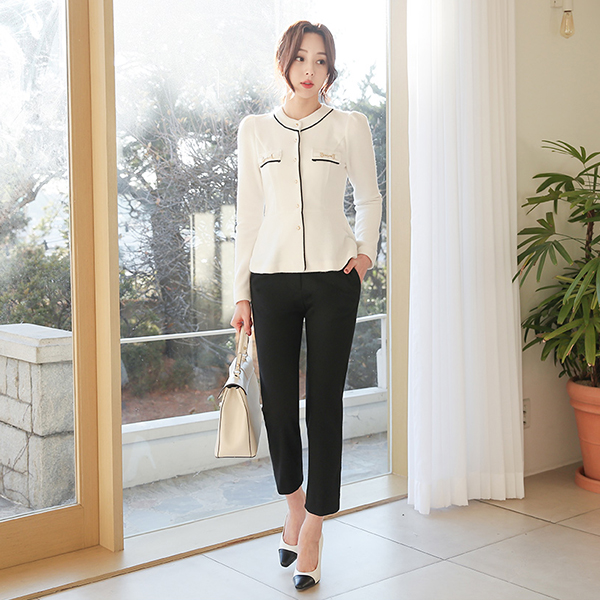 Gold Horsebit パイピング ペプラム 起毛 ブラウス