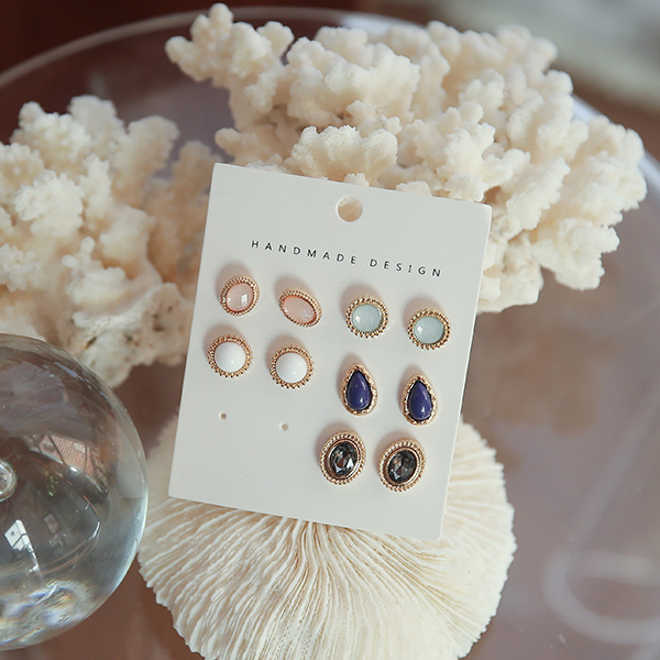アンティーク 컬러원석 ミニ イヤリング(5set)