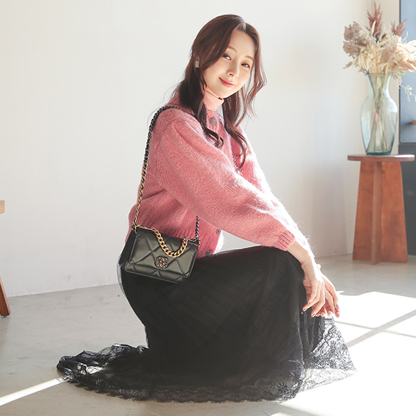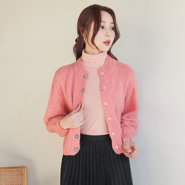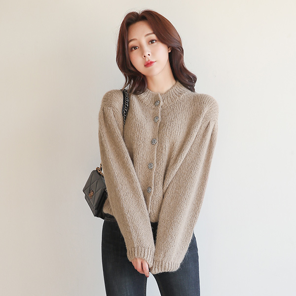 きらり ジュエリー ボタン バルーン袖 アルパカ ウールカーディガン