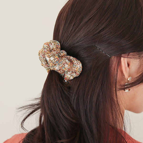 ロマンチック ミックス ツイード バンディング ヘアゴム