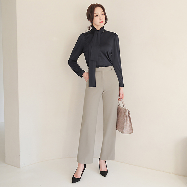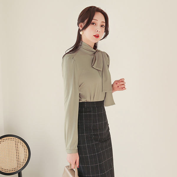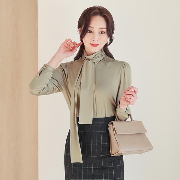 シルキー スカーフネック 隠しボタン ブラウス