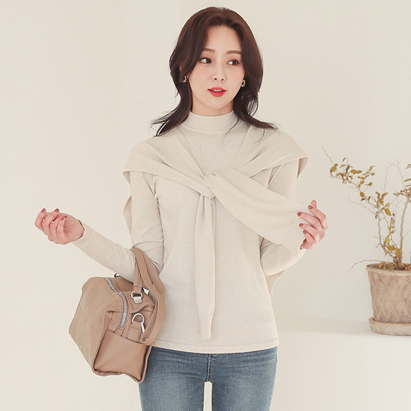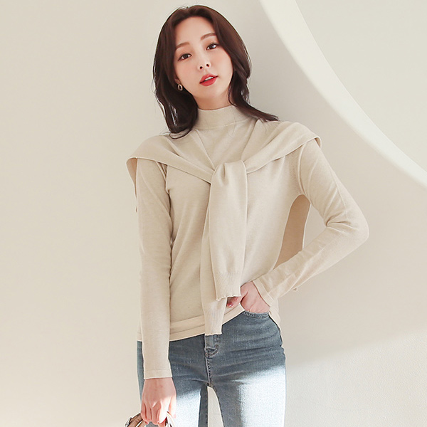 ビスコース ベーシック 半タートルネック ニット&ケープ SET