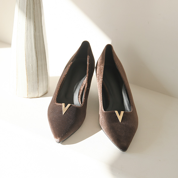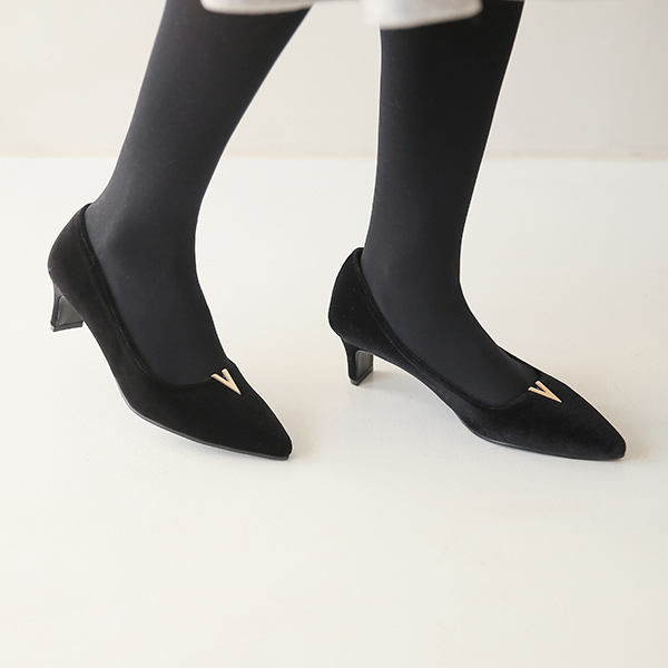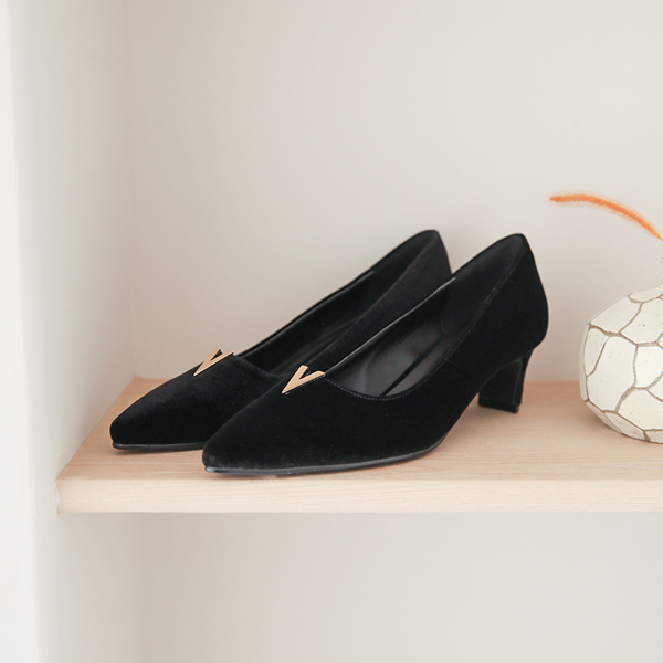 Gold 브이팁 ベルベット パンプス ヒール