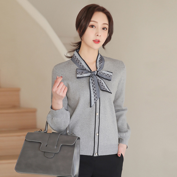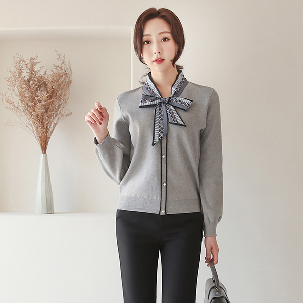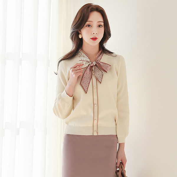 花柄 スカーフネック 真珠 ニットティーシャツ
