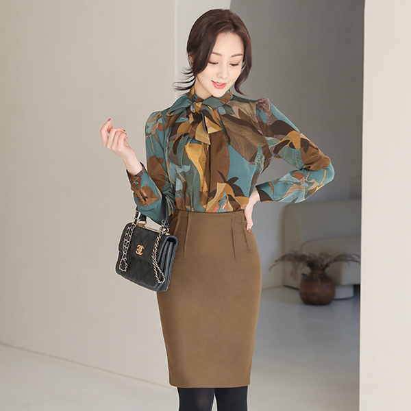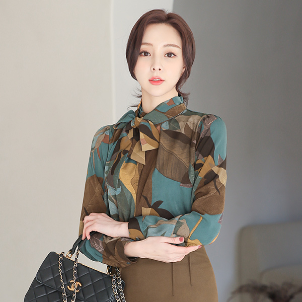 ハイネック スカーフ装飾 カエデ ブラウス