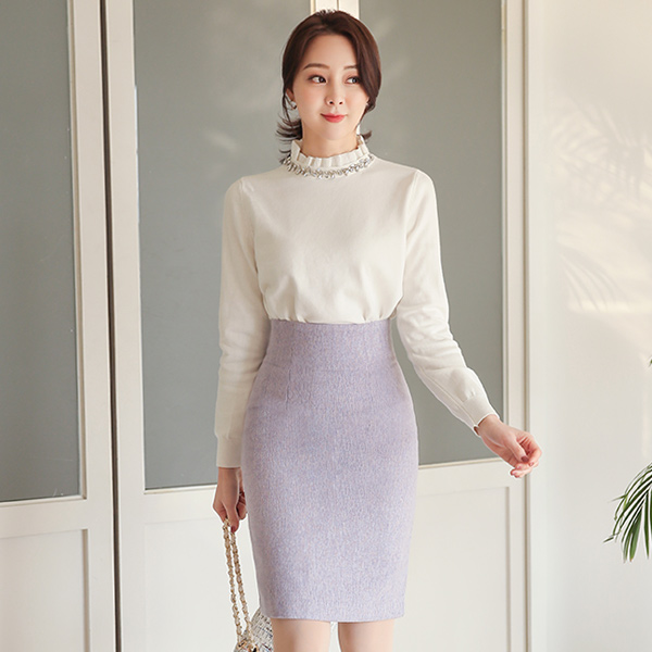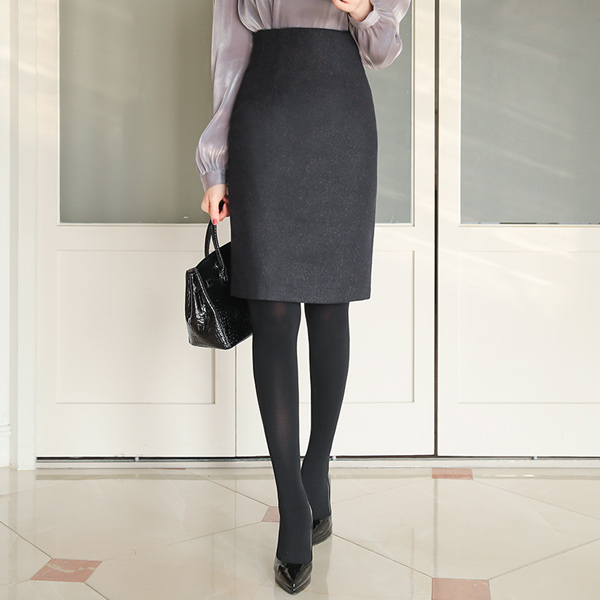 カラーミックス ボカシ 毛織 Hライン スカート
