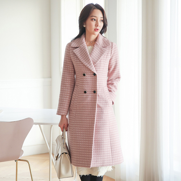 ステッチ チェック ブラックボタン ワイドカラー ウールのコート(キルティング裏地)