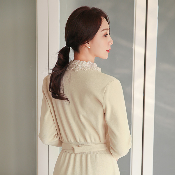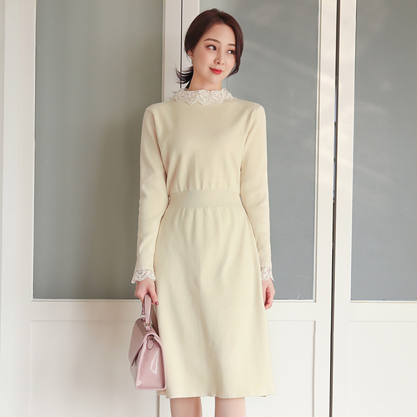 レイス トリミング 漏斗ネック Aライン ニットワンピース
