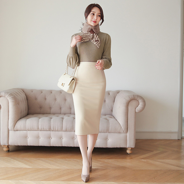 ミニマル ソフト 弾力 ミディスカート(起毛裏地)