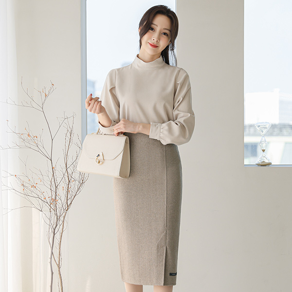 ヘリンボーン サイド スリット ハンドメード ウールスカート